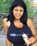 Description: Stacy is a slamming black babe with huge tits and an ass to match. We filmed her outside of a pool and we just had to oil her whole body up and play with it. After we were done with the oil we moved on to milk to smooth out her skin only to play with her curvaceous body some more. We couldn't take just playing anymore so we took her inside for some serious fucking action. You have to check this busty black beauty out!